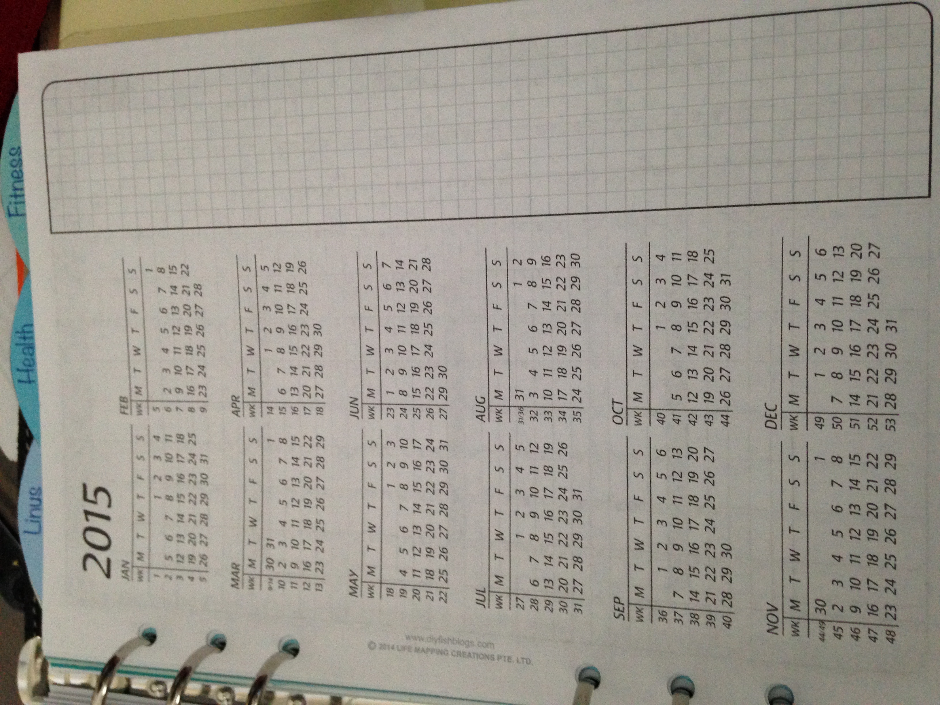 Next I printed my contents pages. These are similar to the old Franklin Covey index pages. They are really a Table of Contents for what you want to stand out for that month. Some people use this page as a to-do list for the month instead. There are two different contents pages included in the download. One file is for 2015 and one is for 2016. Fish made a few visual changes to the 2016. I only printed the 2015 since I’m only dealing with three months at a time.