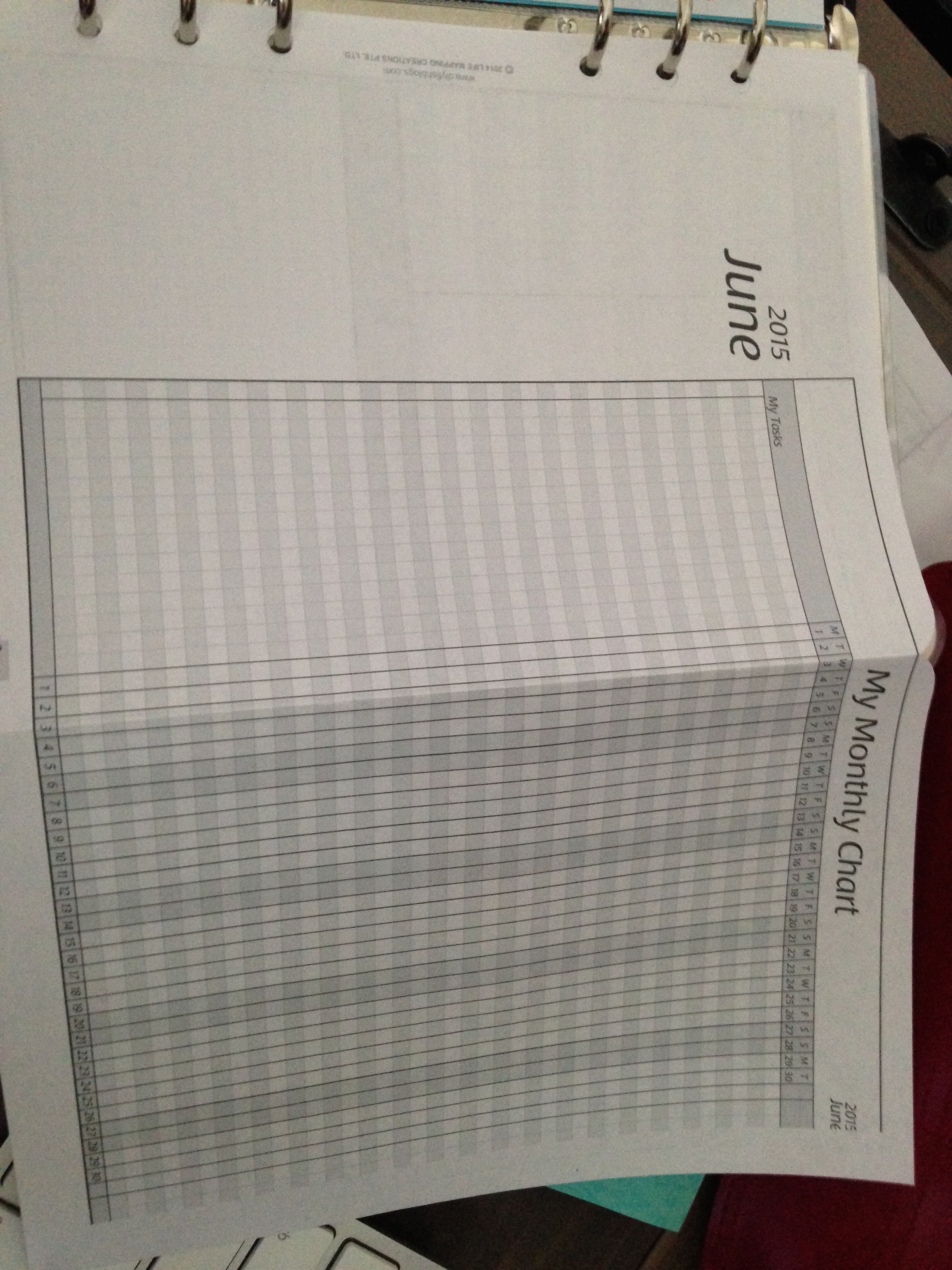 I printed all my monthly charts. These include a “My Monthly Chart” on the front of the page and a large planning area on the back of the page. The page gets folded in half after cutting.