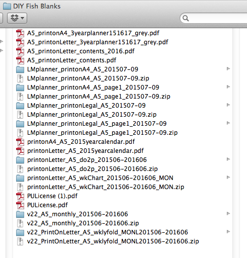 I downloaded all the files and put them in a special folder called “Filofax/DIY Fish Blanks” on my computer so that I can find them again in a few months. When you do this, you get a bunch of sub-folders and files that look kind of like this: