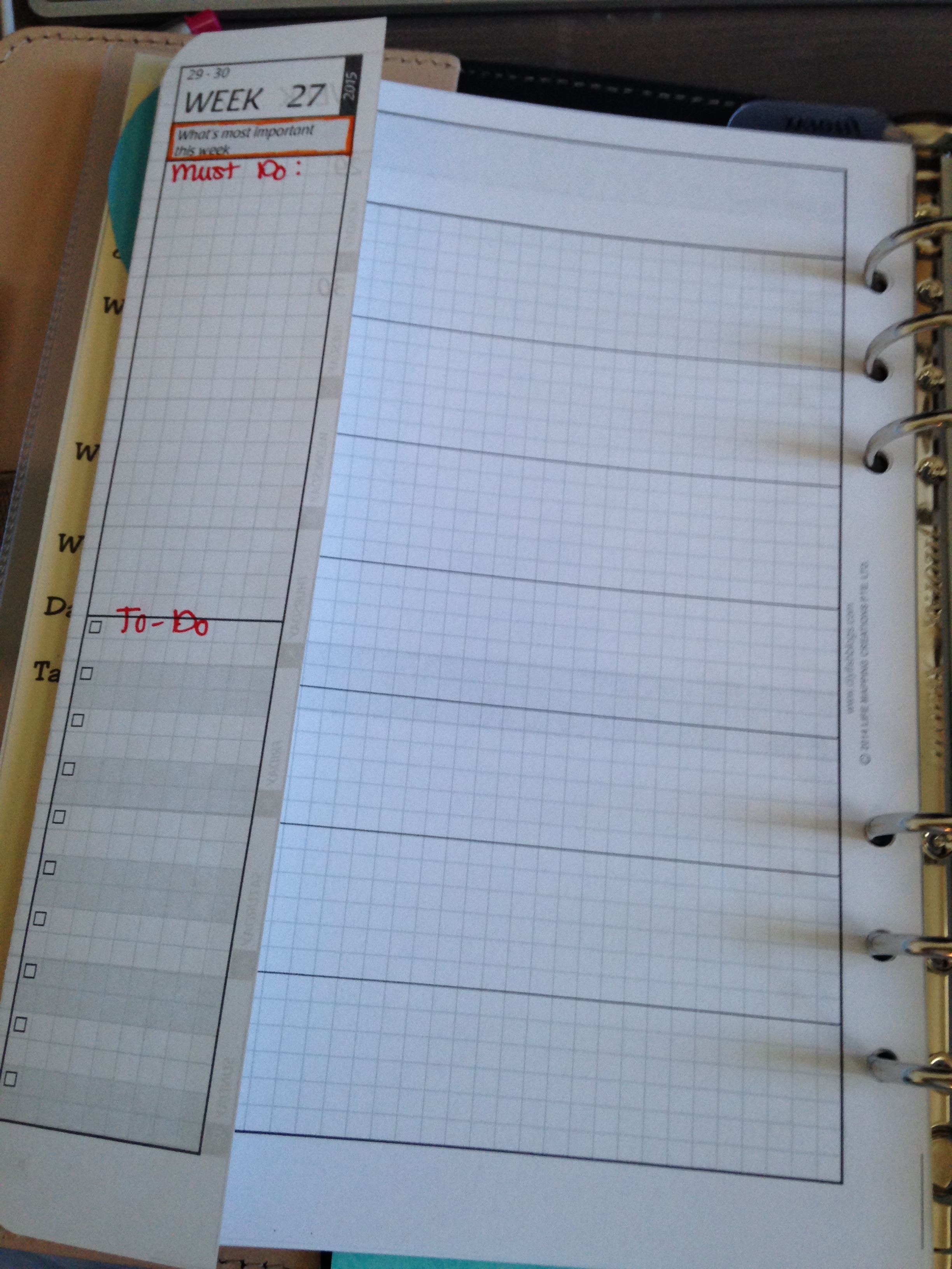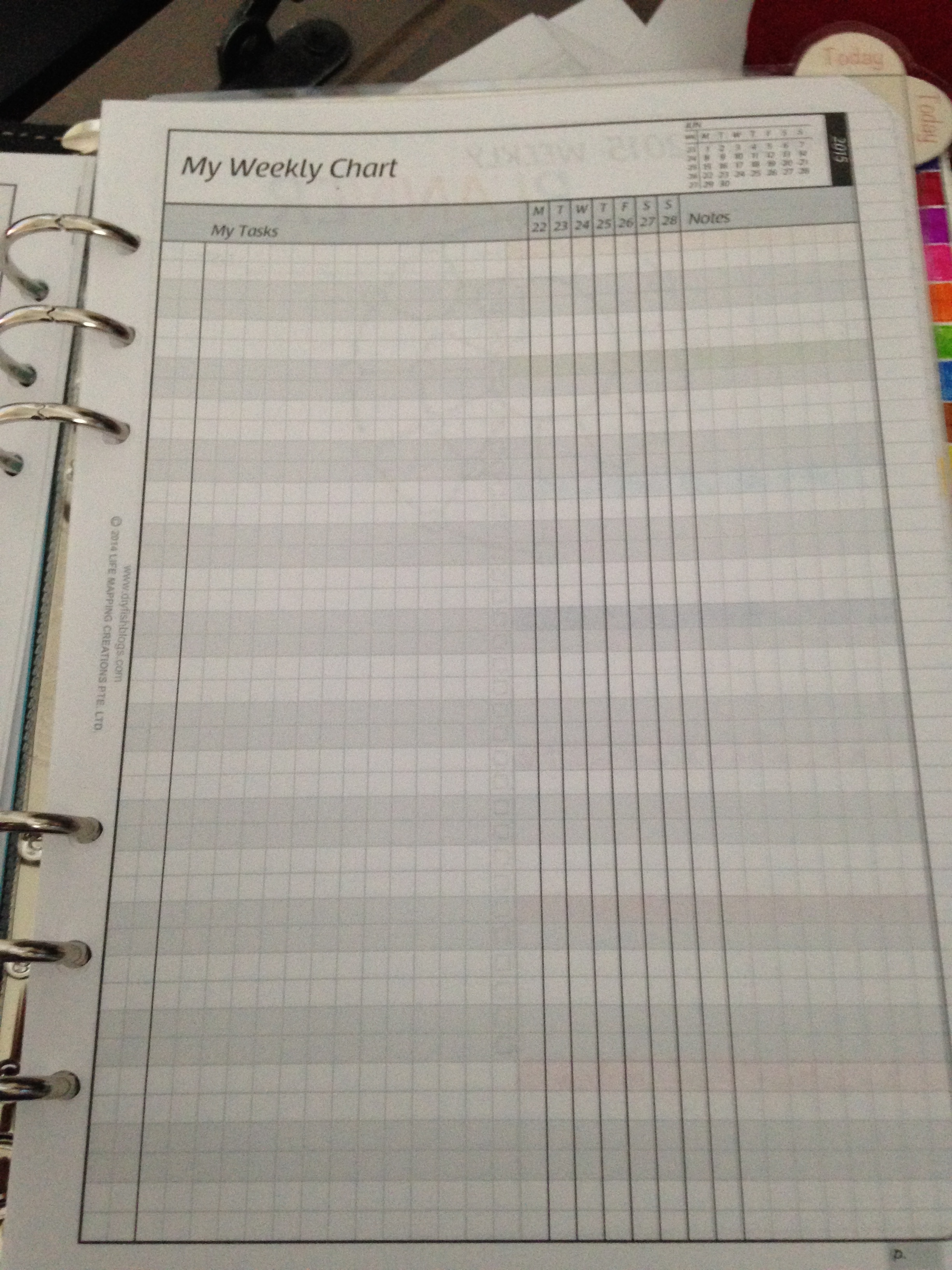Then I have “My Weekly Chart.” I haven’t decided how I’m going to use this other than as an extended “like to get this done this week” chart. Many people use these as tracking charts but I’m planning to do that with monthly charts at the back of my Filofax. I’ll have to see how those work out and update you later.