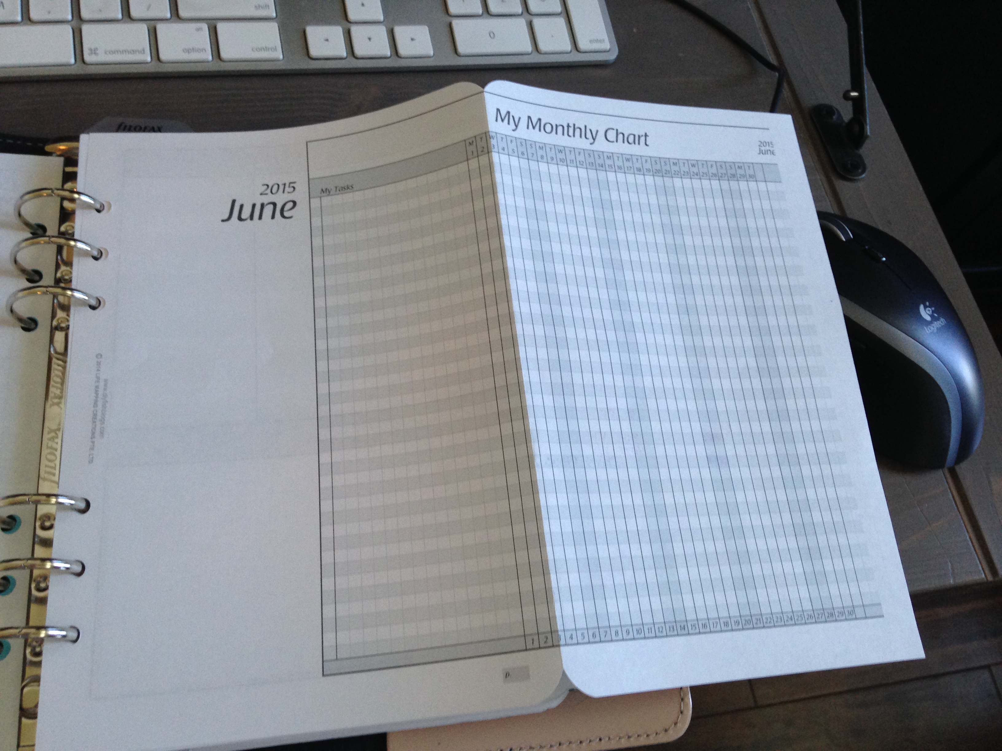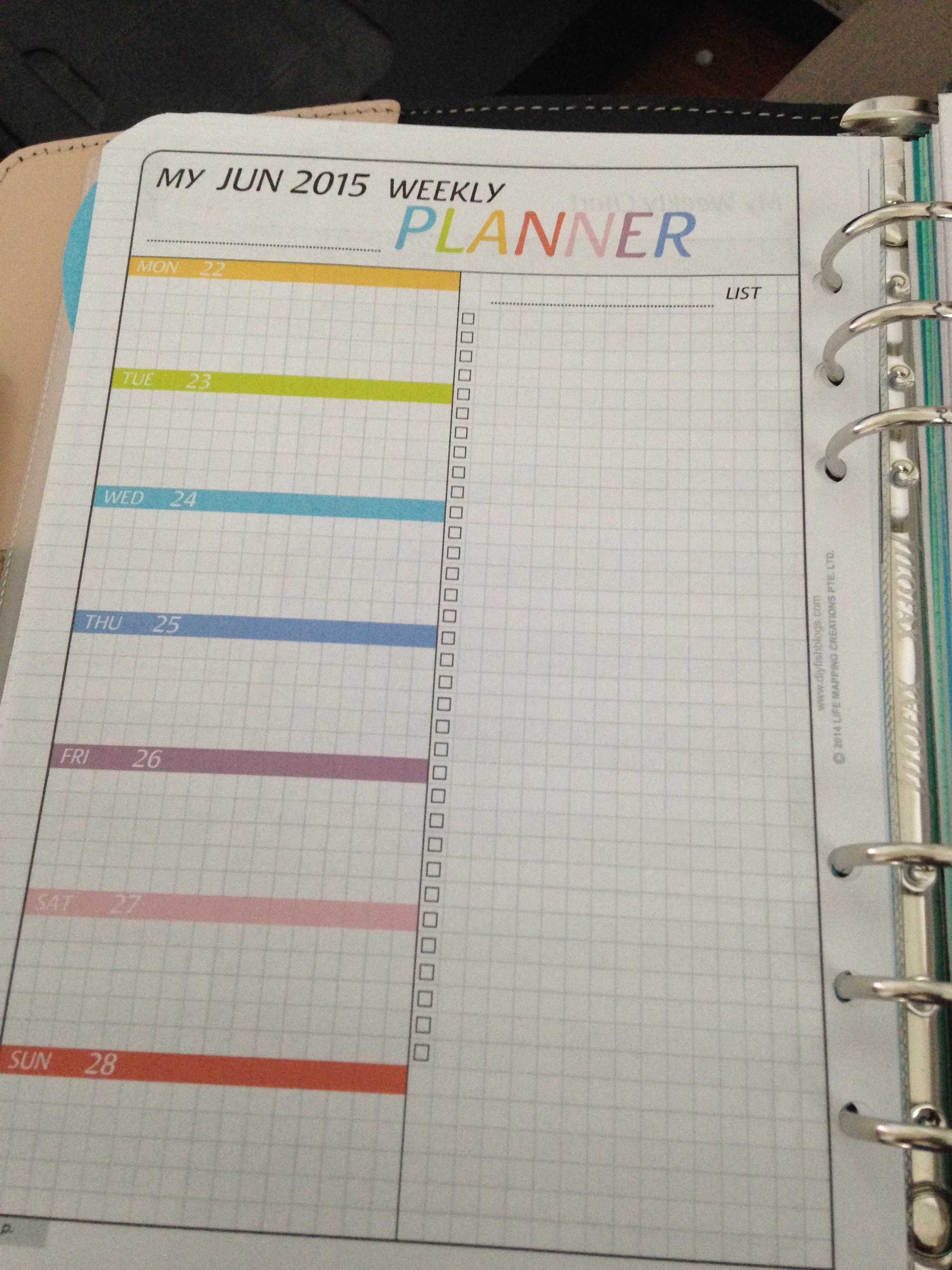 After that is my folded monthly chart/calendar for June. I have mine at the beginning of the month. I have read on Fish’s blog that some people choose to print this item as two separate pages and put the calendar in the front of the month and the monthly task chart at the back of the month for ease of scheduling tasks for heavy projects. Saves them from flipping pages back and forth. I’ll be keeping this in mind as I use these pages for the first time in July.